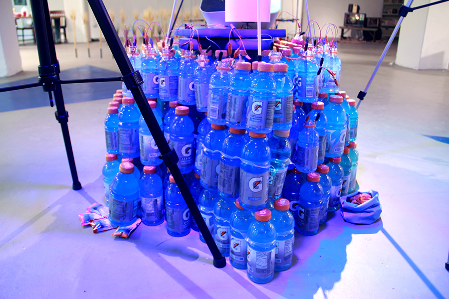 Media: Trophy tripods, 5-hour Energy and Gatorade battery, kickboards, water fitness barbells, swim nose clips, Sport Beans, Fluid performance drink, Ultraswim Shampoo and Conditioner, towel, swim caps, photograph of synchronized swimmers, HD Action Camera, 75’ HDMI cable, monitor with live feed, players’ bench, floor painting.