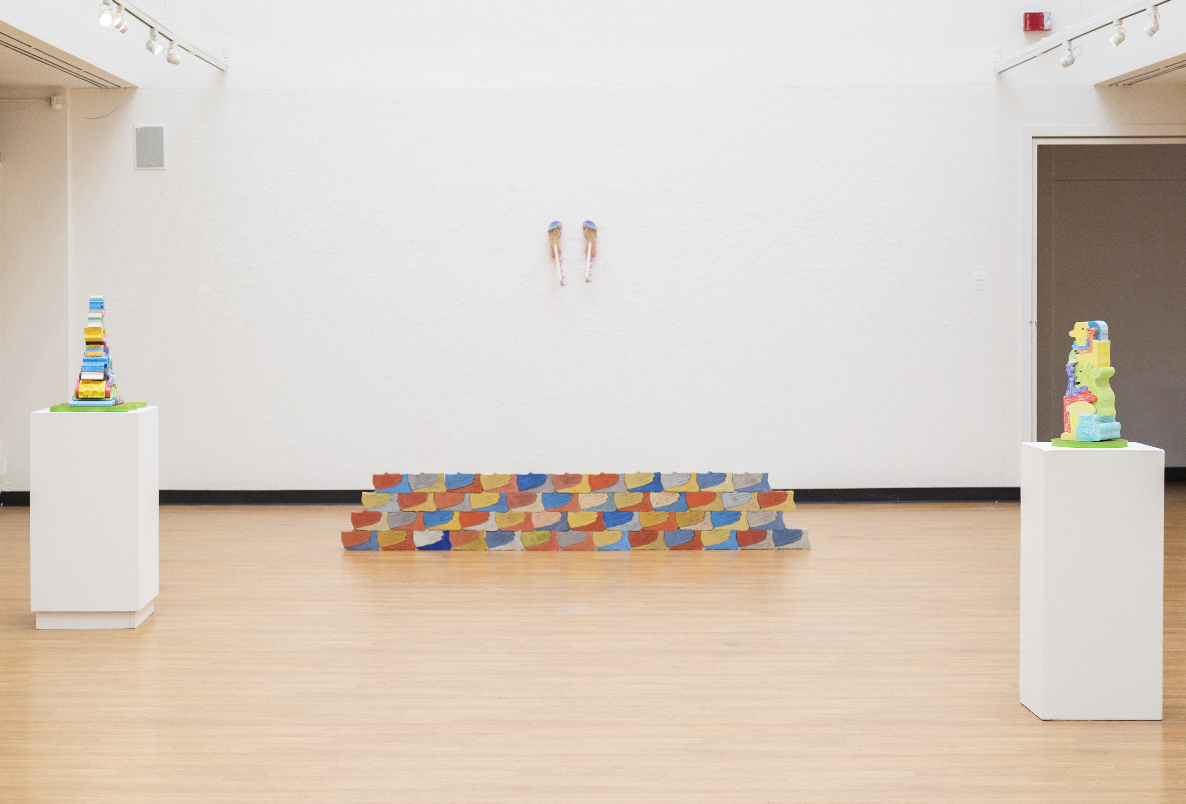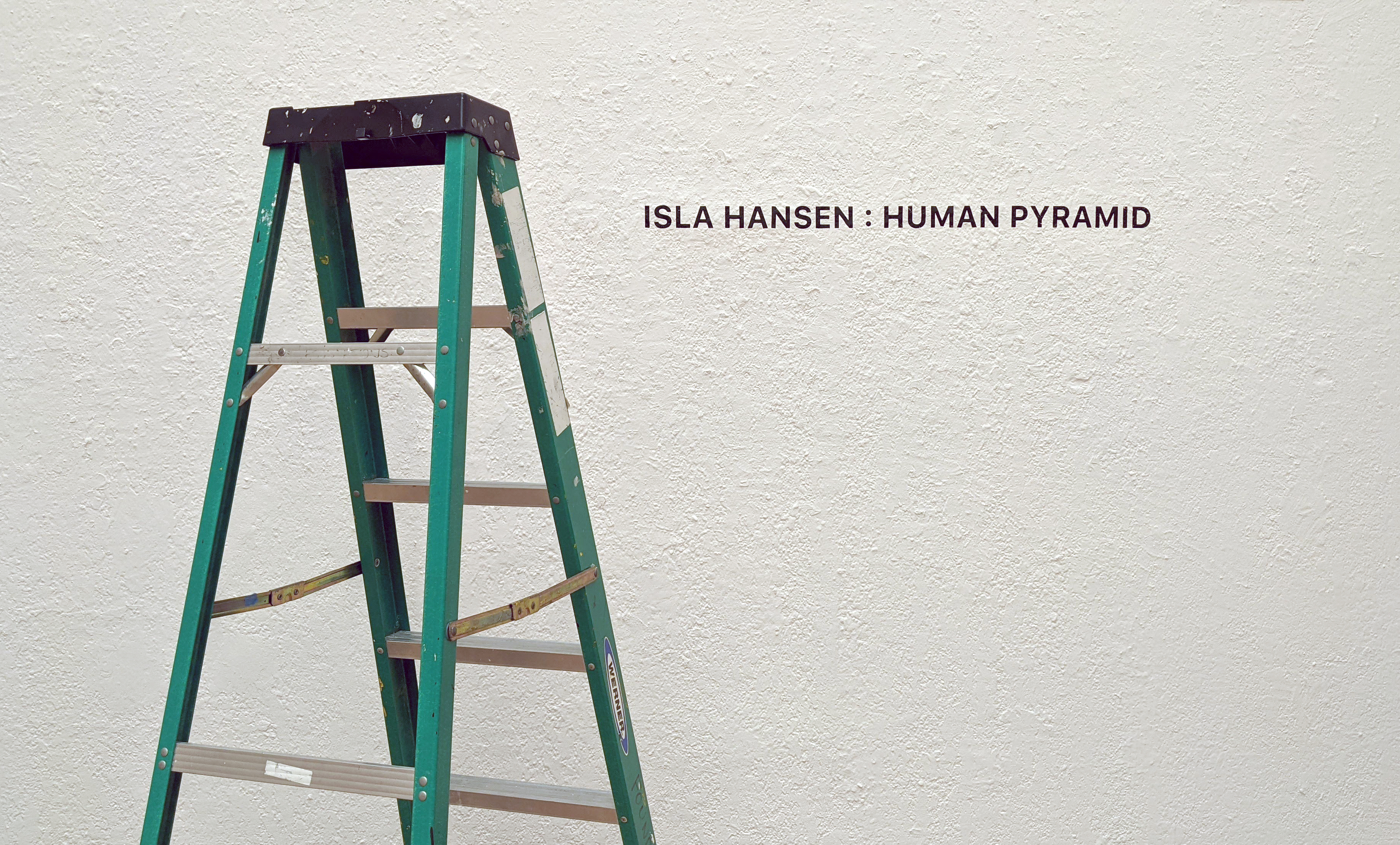 The exhibition Human Pyramid by artist Isla Hansen explores the relationship between body and technology, confronting the feeling of oppressive technological progress with objects of play. Through the use of digital fabrication processes and automated technologies in combination with the hand made, hand modeled, hand molded, and hand finished, the artist aims to reveal the myth of automation -- the often hidden human labor that is always a necessary part of using automated tools, often perceived as more technological than our own bodies. Human Pyramid explores the contradiction, absurdity, tragedy, and joy inherent in the human attempt to build worlds and control them through the use of tools and labor. Inspired by DIY home construction shows, erector sets and construction games, objects of play, sports media, and the notion of self-replicating machines, Human Pyramid searches for an aesthetic that reclaims the tools of oppressive systems constraining bodies at play and bodies at work.