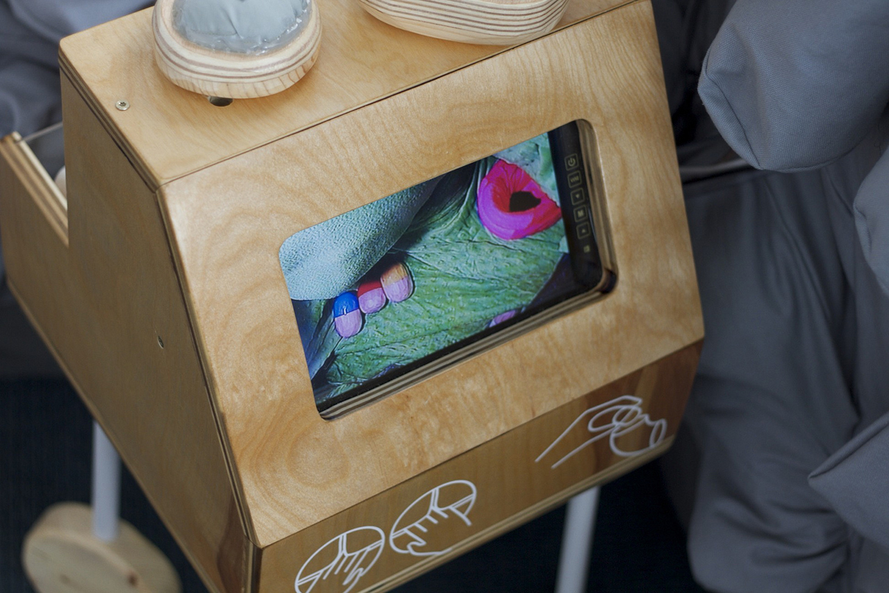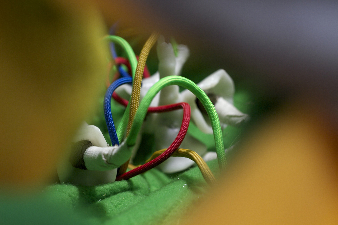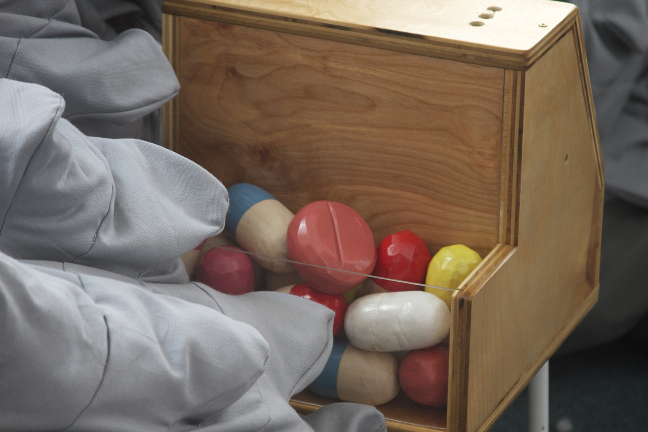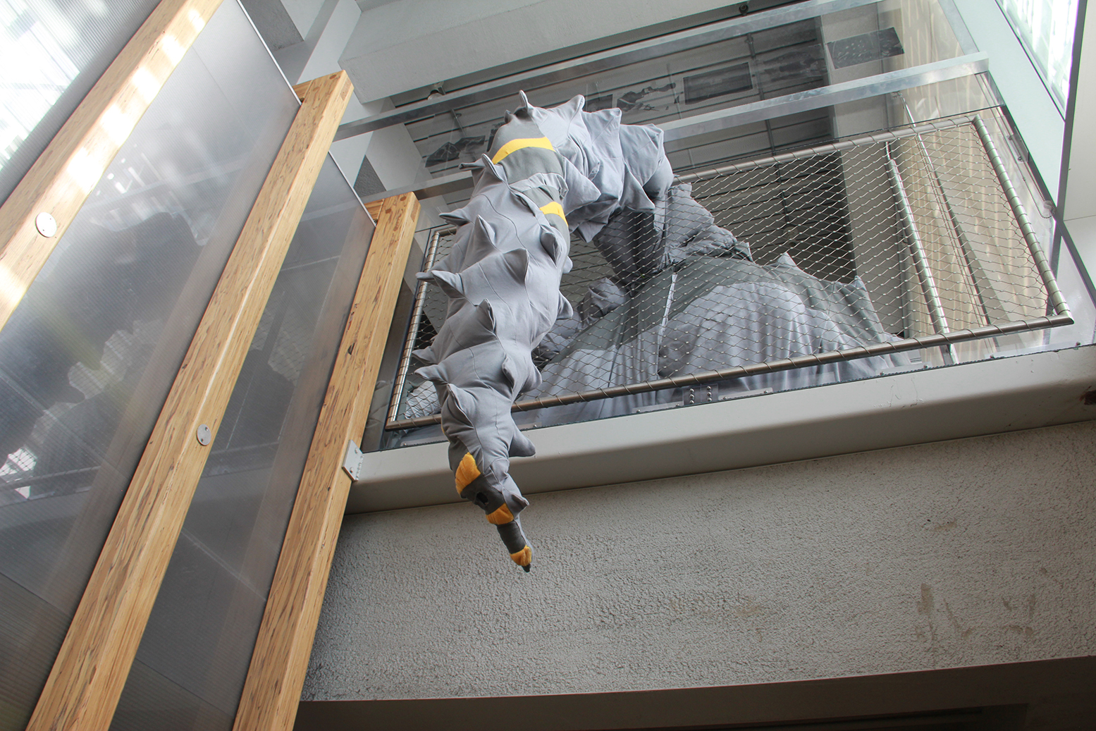 Media: interactive installation featuring wood, steel, aluminum, foam, cotton duck, felt, nylon, 5 CCTV systems, raspberry pi, custom software, magnets, blowers.
