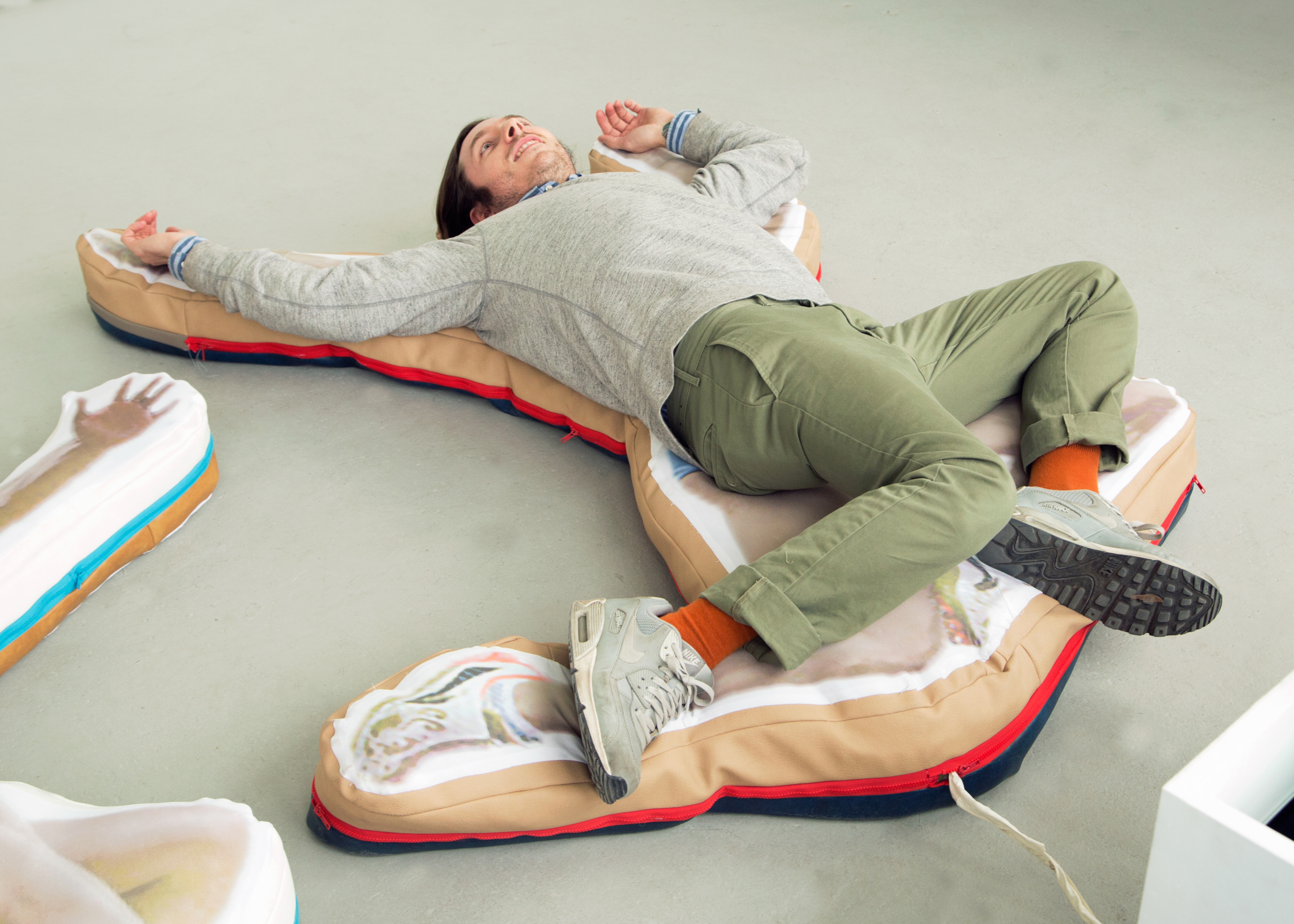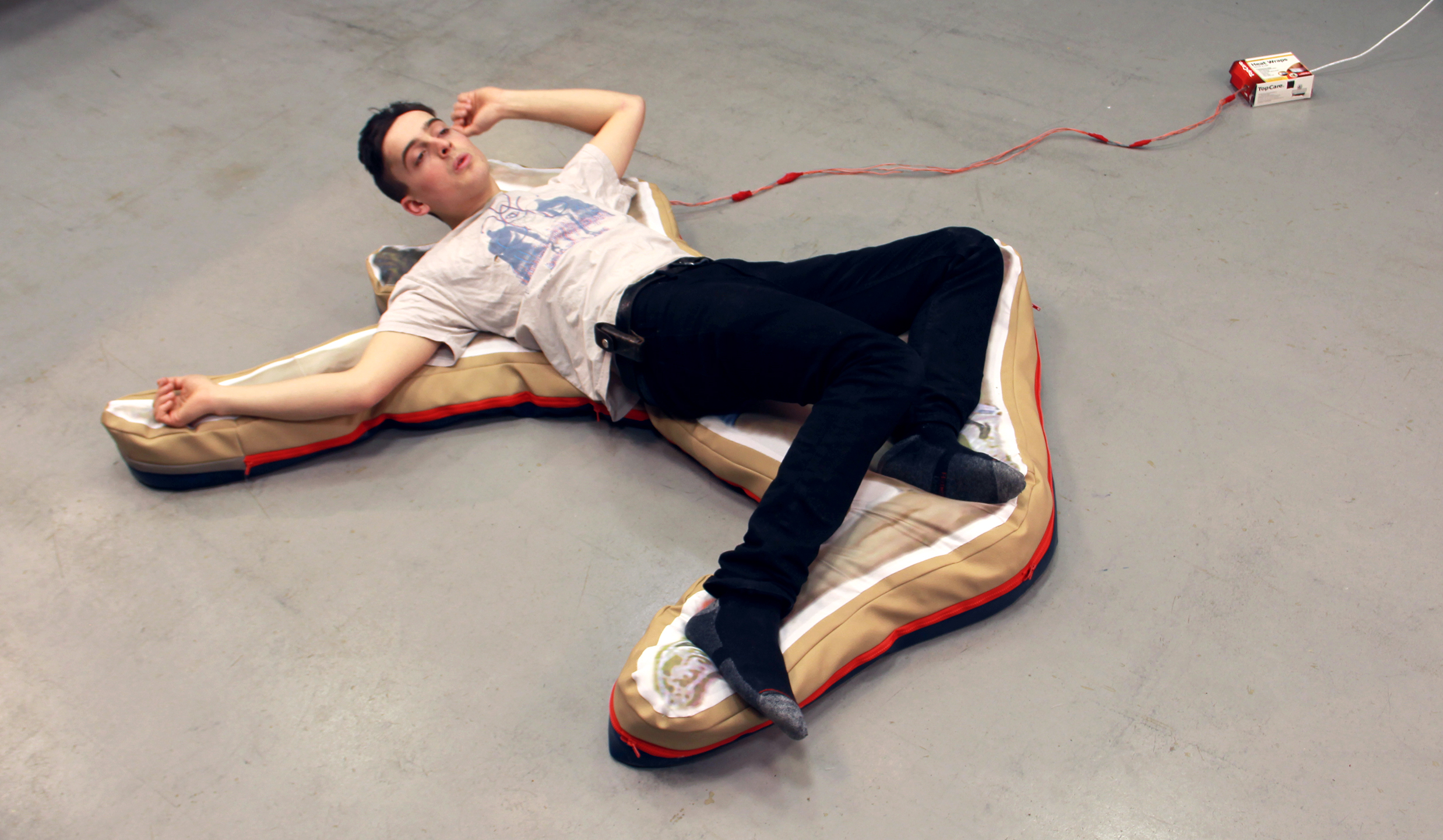 The show featured 2 other works: Technical Knockout, an electronic kinetic sculpture to automate a never-ending game of wii boxing; and Spacebags, two sculptures made by vacuum storing custom-made motion capture suits.